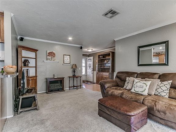 Great open floorplan in this lovely home with an amazing central location in Moore School District. Win! Win! Win! New light colored wood look flooring. Great angles make the most of the space. Extra countertop seating added in kitchen/dining. You'll really love the backyard. A beautiful back patio provides a wonderful place to take in the quiet backyard. Property backs up to a commercial building with no alley access so there is no back neighbor. A brand new 8x8 storm shelter with 10 person capacity provides just the peaceful reassurance that you need for storm season. Never been used. And in addition to the 2 car garage, there is an very nice outbuilding for additional storage. HVAC replaced in 2014. Don't hesitate!
