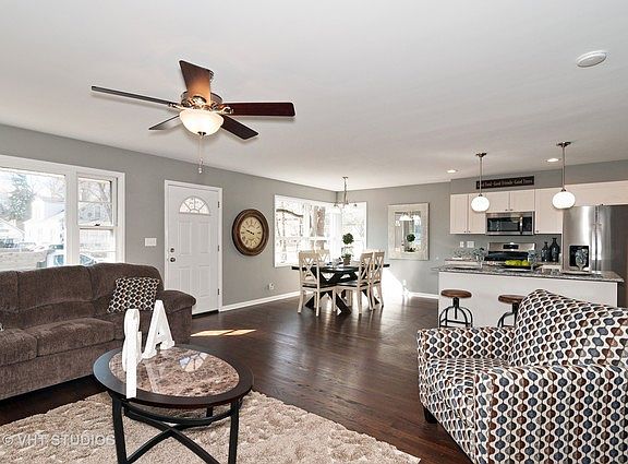 Extremely well built all brick, completely remodeled ranch home on a corner lot. Eat in kitchen has all new gorgeous white shaker cabinets, including a pantry, a huge island and breakfast bar, large area for kitchen table, beautiful granite counter tops, and stainless steel appliances. Kitchen is completely open to the living room - perfect for entertaining! Beautiful solid oak hardwood floors throughout, brand new bathroom with over sized vanity and a gorgeous tile shower. Three bedrooms are all generously sized and have great natural light. Plenty of closet space in this home too. The basement has a separate entrance from the garage, and has another full bath, laundry hook-up and tons of space that can be used as a workshop or finish it off and add more bedrooms and living space. Relax in the backyard on your private paver patio. Great location close to I-88 and shopping, and walking distance to school and park. This home has it all!