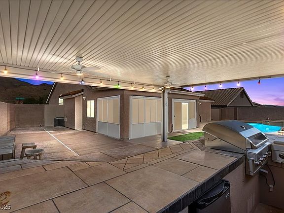 Beautiful & Impeccably Maintained 1 Story Home with a Pool, Spa, Outdoor Kitchen & RV Parking on a Large Corner lot in a Great Henderson Community! Large Living & Formal Dining area w/Vaulted Ceilings * Open Family Room w/Fireplace * Big Kitchen w/Breakfast Bar, Island, Custom Cabinets (Under Cab Lighting), SS Appliances, Walk-In Pantry & Breakfast Nook * Lrge Master Bedroom & Mstr Bath w/separate Shower, Tub, Dble Vanities & Walk-In Closet * Office/Den * Ceramic Tile, Solar Tubes (Kitchen, Spare Bath & Laundry) & Shutters * 3 Car Garage w/1 bay used as a Workshop, Exterior Door * Enclosed Covered Patio (enclosure can easily be removed) * Beautiful Sparkling Pebble Tech Pool & Spa * Huge Covered Outdoor BBQ Area with Abundant Bar Seating * ADDITIONAL: new dishwasher, remote controlled patio shades, surround sound, Pentair pool control, A/C & Furnace 4yrs old, extra insulation in attic (Radiant Heat Barrier), Low e-windows, microwave vented outside * Come See This Amazing Home Today!