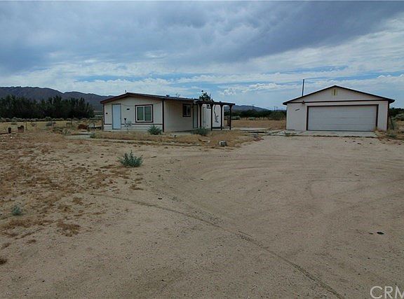 Cute 2 bedroom home on 2+ acres with 2 car detached garage. 433A recorded. Natural gas. Water wells. Beautiful area of Lucerne Valley and close to pavement.