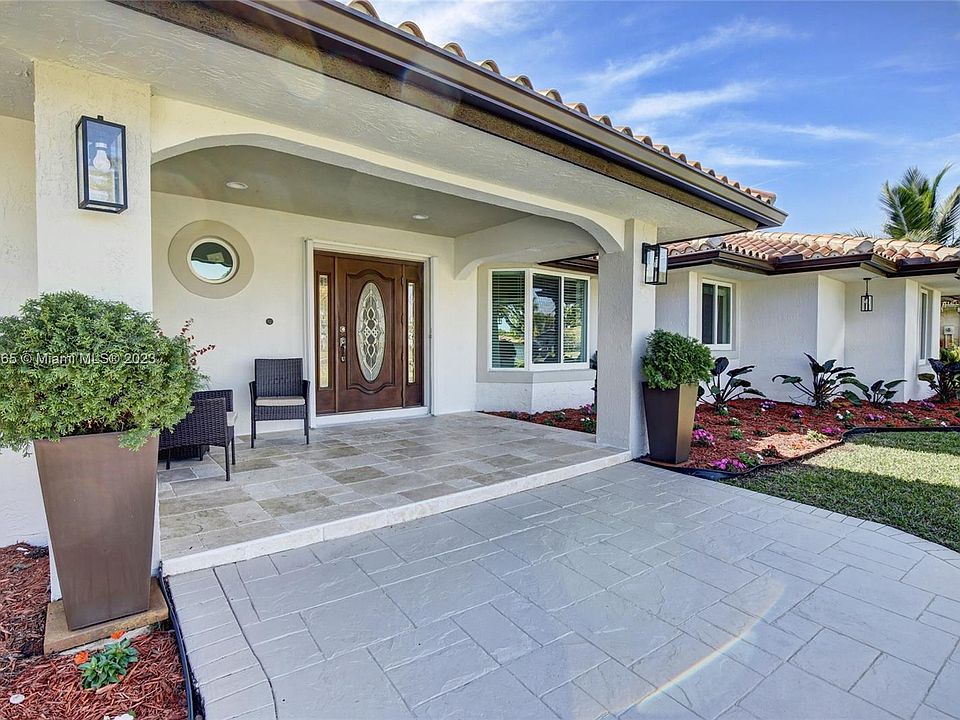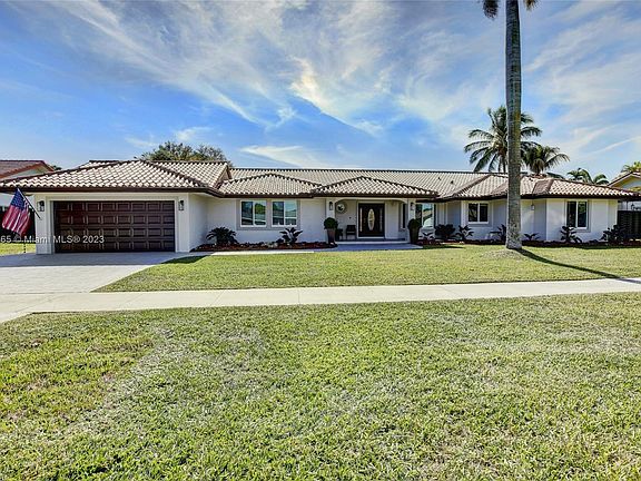 Gorgeous and Spacious. Enjoy the peace and tranquility of the largest pool home in Pinewood Estates. The home features a triple split floor plan, six bedrooms, four bathrooms, impact windows, newer stainless steel appliances, gourmet kitchen with large island, gas range and oversized horizontal pass-through window to private patio over looking a 35’x18’ salt pool with mood lighting. Flooring includes gleaming marble floors and Brazilian Cherrywood floors in the bedrooms. Enjoy entertaining in your private oasis on the oversized 14,581 SF lot, large pool. BBQ area, two side yards and a beautiful patio with TV. Other features include a Level 2 EV Charging Port, 2 car garage, large stamped concrete driveway, freshly painted, new landscaping. South Florida Living At It’s Best!