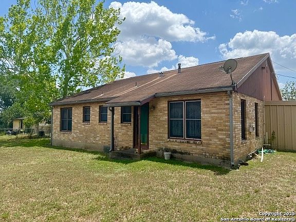 Here's a spacious brick vintage home, located in Pettus, TX. The lot, 100x150, is also spacious and has a large oak tree in the big backyard. With some work, this home could be a gem! the living room has hardwood floors. The three bedrooms and dining room have carpet but there could be hardwood under the carpet! What a nice surprise that could be! There is a dining room which is spacious and located off the kitchen. The kitchen is open to the dining room and living room. It has central heat and air, city water. More: 3 bedrooms, 2 full baths, nice storage, 1 car garage, i carport, Hot water heater replaced in 2024, washer and dryer.; Original MLS#: 113463; Deed Restrictions: ; Home Warranty: No; Land Dimensions: .34; Land Size Apx: .34; Roof: Shingle; Water District: No; Water Heater: Electric; Windows: Single Pane