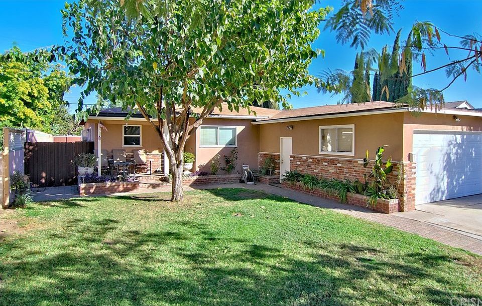 Discover this wonderful single story home nestled on a quiet street in the heart of Granada Hills. Three bedrooms and two baths. You enter the welcoming living room leading to a dining area with sliding glass doors. Just outside the sliders is a covered patio and fenced backyard. Beyond the living room is a spacious family room with high ceilings, sliders leading to the backyard and a beautiful brick fireplace. Just off the dining area is the kitchen with abundant cabinets, and a double sink below a garden window. There is a large spa located outside the main bedroom. Attached direct access 2 car garage. Brick sidewalk, mature trees, raised brick flower beds and brick trim enhance the charm of this traditional home. Features include: Hardwood floors. Smooth ceilings. Tankless water heater. Copper plumbing. Ceiling fan. Updated electrical panel and some 220. Attic is insulated. Automatic sprinkler system. Storage shed. Close to schools, parks, restaurants, shopping and easy freeway access!