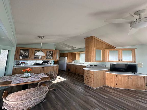 Welcome to this delightful Cavco park model, a perfect blend of comfort and convenience. This home features new floors throughout, ensuring a fresh and modern feel. Meticulously maintained, it boasts a large shed for extra storage, and a washer and dryer for your laundry needs.Fully furnished and ready for you to move in, this home is priced to sell. Enjoy the privacy of a covered driveway with sun screens, and extend your living space outdoors with the included patio furniture.Don't miss out on this fantastic opportunity to own a well-maintained, move-in ready park model. Schedule your viewing today!
