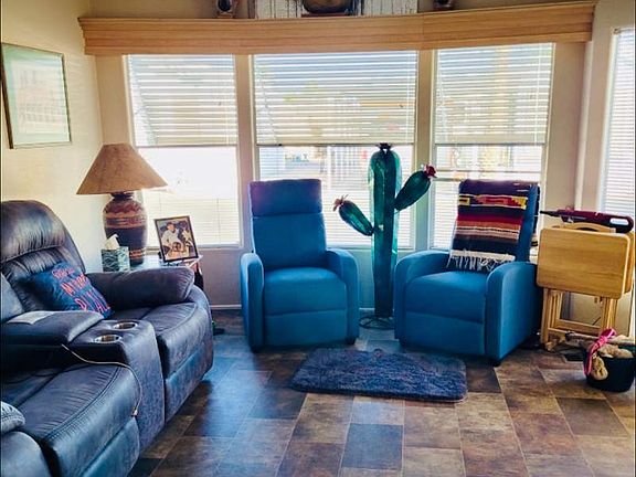 This quaint 385 square feet Park Model home in Las Quintas offers cozy living for individuals looking to downsize or snowbirds looking for a winter retreat. Built in 2000 by Cavco, this home features a functional layout with a spacious living area, a fully equipped kitchen with modern appliances, a comfortable bedroom, and a sleek bathroom. The home is tastefully decorated with neutral colors and large windows that allow natural light to fill the space, creating a warm and inviting atmosphere. Additionally, the home boasts a small outdoor patio perfect for enjoying the sunny Yuma weather.Las Quintas is a vibrant 55+ community located in the heart of Yuma, AZ. Residents of this community have access to a plethora of amenities, including a clubhouse with planned activities and events, a fitness center, swimming pool, hot tub, and tennis courts. The community also offers beautifully landscaped grounds with walking paths and picnic areas, providing a serene and peaceful environment for outdoor recreation. With its close proximity to shopping, dining, and entertainment options, Las Quintas offers residents a convenient and comfortable lifestyle in a beautiful desert setting.