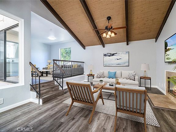 You are greeted by abundance of light with an airy feel as you enter the home. Formal living room has a high vaulted ceiling and exposed beams with a fireplace and the formal dining area is elevated & just a few steps away. Home boasts an enclosed courtyard for private el fresco dining and which further ushers in plenty of light onto the main floor. The atrium also has a gas connection, ready for your BBQ grill. Well appointed light & bright eat-in kitchen with tiled counter tops & cabinets galore. There is a wet bar too right next to the dining area & the kitchen. 1st floor also offers a private guest bedroom with a balcony and a half bath. 2nd floor is bathed in natural light and offers the exclusive primary suite with an en-suite full bath and an additional Den that could be put to myriad uses. 2nd bedroom with a balcony on this floor has an en-suite bathroom too. None of the bedrooms share any common walls & offer absolute privacy. On the lower level, you will find an extra large bonus room ideal for a media center, children's play area or a home gym, the in-unit laundry is conveniently located here with direct access to the large 2 car garage that has plenty of cabinets for storage. Home is equipped with a Water Softener in the Garage and a Reverse Osmosis Water Purifier in the Kitchen. Close proximity to diverse grocery stores, dining, shopping malls, The Vineyards in Porter Ranch ,Theatre. Walmart, Costco, Chatsworth Train Station / Metrolink, and the 118 freeway. Minutes to the local schools. Per seller, HOA covers Water, Cable TV, Roof, Exterior Insurance, Common area maintenance, Club Room ( Club Room has a kitchen, refrigerator and a microwave. Deposit is required to reserve in advance to ensure cleaning after use) along with Pool ( Not Heated) & Spa (Heated). HOA is $490 and lower than the rest since there is no SBA Loan.