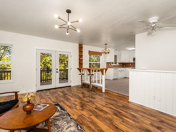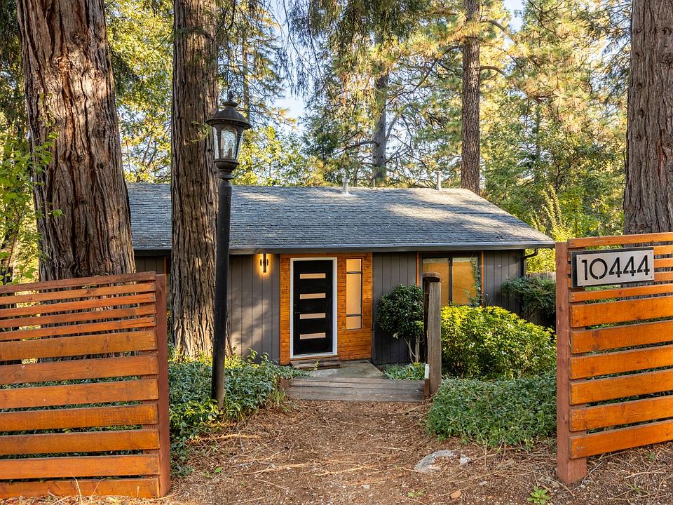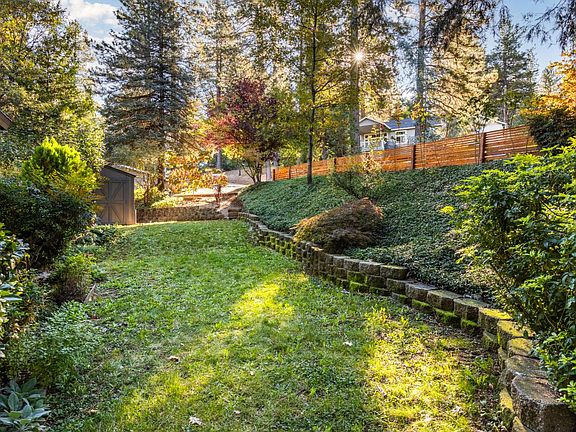 Imagine sipping your morning coffee surrounded by Japanese maples, dogwood, and lilac while soaking in your private jacuzzi all without a neighbor in sight. This completely remodeled gem delivers that rare combination of in-town convenience, privacy, and stunning views with Union Hill trail system just a short walk away. Every detail has been thoughtfully updated in this turn-key home. Step through the striking mid-century modern front door to discover a kitchen that's both beautiful and functional, featuring butcher block countertops, terrazzo tile floors, terracotta clay tile backsplash, and brand-new stainless appliances. New patio doors flood the space with natural light and open to a generous Redwood deck. The smart split-level layout puts the guest bedroom, full bath, living room, and kitchen on the entry level, while the lower level serves as a private retreat with the primary suite, second bath, versatile sunroom/office, laundry, and that spectacular deck with jacuzzi overlooking the grounds. Outside, the professionally landscaped yard creates your own botanical sanctuary. Mature specimen trees and the fully irrigated grounds are designed for easy maintenance and year-round beauty. The agent is the owner.