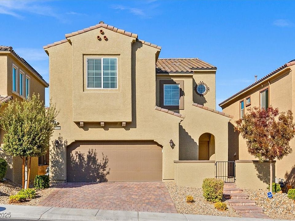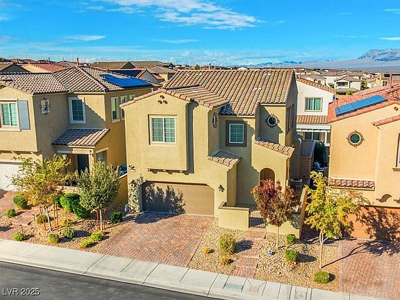 Beautiful 4-Bedroom Home in the Gated Aspen Neighborhood of Skye Canyon. Welcome to this stunning 4-bedroom, 3-bath home with a spacious loft, located in the highly desirable gated Aspen community within Skye Canyon. The main floor features extended tile flooring throughout, complementing a modern kitchen equipped with stainless steel appliances and granite countertops. The home also includes two-tone paint, a refrigerator, gas stove, dishwasher, recessed lighting, walk-in closets, and ample cabinet and storage space. An attached two-car garage provides added convenience. Enjoy a beautifully landscaped backyard ideal for relaxation or hosting guests, while the upstairs loft offers versatile additional living space suitable for a variety of needs. As part of the Skye Canyon master-planned community, residents have access to exceptional amenities including Skye Center, Skye Fitness, scenic trails, dedicated bike lanes, a community pool, and parks, all designed to enhance everyday living.