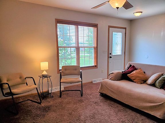 Spacious split floor plan 4-bedroom 2 bath ranch on wooded cul-de-sac street. NEW FURNACE was installed February 7, 2023. Living room is open to the dining/kitchen areas. Home has huge eat in kitchen, island, appliances, walk in pantry, recessed lighting and sliding doors to back yard. Cozy main bedroom has full bath with tub/shower. Finished laundry room with clothes rack. Attached 2 car garage, paved driveway and 1-acre wooded lot.