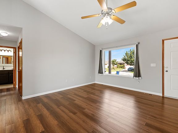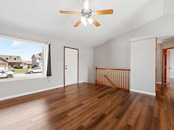 Welcome to this well-established home in the beautiful neighborhood of Fawn Grove at Sunset Lakes Addition. Surrounded by nature, the property features a wood deck and offers exceptional curb appeal with a two-car garage. Upon entering, you will find a spacious open floor plan that combines the living room, dining area, and kitchen. The kitchen boasts ample cabinet space and storage, while the dining area adjacent to it provides an ideal setting for entertaining and family gatherings. The master bedroom is generously sized to accommodate a king-size bed and includes a well-appointed bathroom with dual sinks and a large walk-in closet. The basement includes a large family room, an additional two bedrooms, and a bathroom. Outdoors, you can enjoy lovely views from the wood deck to the view of the sunset lakes, and the neighborhood is close playground and close to Harrison Park, perfect for afternoon walks or exercise.
