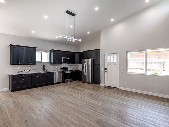 Gorgeous newly constructed custom home, just built from the ground up! You would be the first ever to live in this home! The luxurious home has some amazing features: -- super high 16ft vaulted ceilings in the kitchen & great room plus 10ft ceilings in the master bedroom and bathroom --Amazing modern feature wall to get the conversations started, bright living space, and a cozy oversized electric fireplace to make it feel like a home! -- solar panels -- artificial turf so you can help conserve water -- Huge 2 car garage -- LED dimmable lighting throughout the home, Super efficient Central HVAC --oversized chefs kitchen with all stainless steel appliances included with kitchen as well as quartz countertops. --laundry closet with full sized brand new washer and dryer included, waterproof LVP flooring that is pet & kid friendly. **This home is a free-standing ADU to the main home on the property, and has it's own driveway leading up to back units Internetand electric bill will be put under the tenant's name. Water will be a set amount per month due to owner at time of rent first of the month ($150)