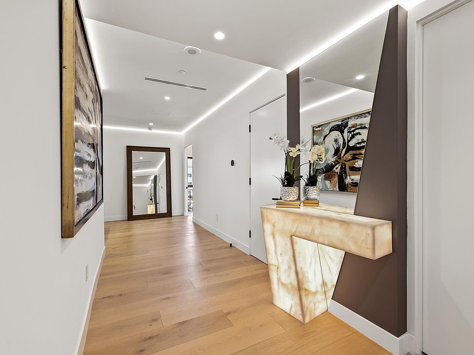 One of the most prestigious addresses on the Wilshire Corridor. "The Grand." This incredible 11th Floor modern beauty has it all. Completely custom unit has been remodeled from top to bottom, no expense spared. Gorgeous foyer with one of a kind backlit onyx shelf in entry. New Cambodian Hardwood floors throughout. Very rare HUGE outdoor patio with great views of Downtown and Century City. Made to relax, BBQ and/or entertain. Brand New custom designed Quartzite kitchen with amazing breakfast bar. Italian Lacquer Kitchen Cabinets with brand new appliances; Fisher & Paykel refrigerator, dishwasher, single oven with built in microwave, 5 Burner stovetop, hood and water filtration system. There's a separate laundry room with Miele ventless washer/dryer. Large living room with custom framed wall for 75 inch TV, Cat 6, with bar & dining area, custom state of the art Lutron lighting with ipad and raised ceilings throughout. Both bathrooms have custom designed showers with porcelain slabs , top of the line Toto toilets, quartz countertops, marble floors, custom fixtures/cabinets, rain head , bench seat and more. Primary bath has dual sinks and a walk in closet .Very rare to find a unit like this. Full Service Building with Valet Parking, Fitness Center, 24 Hour Security, Pool, Spa, Conference room, library and more . Do not miss this rare opportunity . This is a 10 Plus..Bring your fussiest clients.