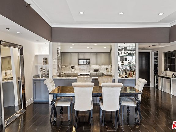 Bright, airy & spacious, open floor plan with huge living / dining areas, ideal for entertaining. Bedroom suites on opposite sides of the unit offer privacy & functionality. Living room features floor to ceiling windows and leads to a Patio w/ stunning & dramatic 180° views of the city, Wilshire corridor & beyond. Dark, wide-planked Hardwood floors (re-leveled upon installation) grace the main living spaces & bedrooms. A gorgeous open-concept kitchen features Calacatta marble counter tops, custom cabinetry, shelves & built-ins + newer stainless steel appliances. Additional upgrades include dimmable recessed lighting throughout, integrated surround sound, elegant bathrooms featuring timeless, high-quality finishes . The Grand, a highly sought after full-service address offers 24-hour concierge, valet parking, gym, pool, spa, banquet room, conference room. Ideally situated, close to Beverly Hills, parks, museums, places of worship, restaurants, theaters, Westfield Century City & UCLA!