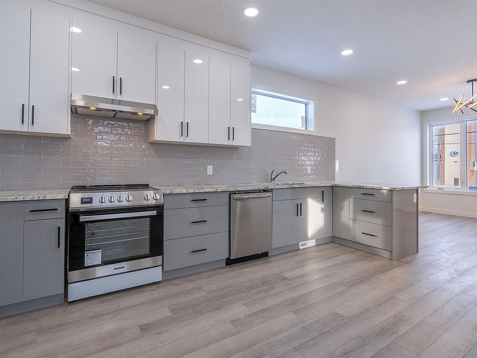 Amazing opportunity to own a full duplex with four legal suites in a prime west-central Edmonton location. This property offers 8 bedrooms, 6 full bathrooms, and 2 half bathrooms, making it a fantastic investment with strong income potential. Each side features an open-concept main floor with a bright living room, dining area, and modern kitchen with white cabinetry and full appliances. The main units include 3 bedrooms and 2.5 bathrooms, while each legal basement suite offers 1 bedroom and 1 bathroom. High-end finishes and attention to detail are evident throughout. Conveniently located near amenities, public transit, and major routes, the property provides quick access to downtown Edmonton and is only 10 minutes from West Edmonton Mall. With current city zoning, there is potential to add a fifth unit as a garage suite, making this a rare and valuable opportunity for investors or those seeking a versatile income-generating property.