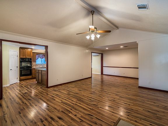 Welcome Home! Charming 1 story, 3/2/2. Beautifully updated, spacious kitchen with Kraftmaid soft close cabinets and drawers, double oven, 5 burner gas cooktop, BOSCH dishwasher, walk-in pantry, granite counters and tumbled stone backsplash. Family and dining room with vaulted ceiling and laminate flooring. Large master bedroom with private bath, featuring beadboard and brushed nickel fixtures. Secondary bedrooms offer laminate floors, crown molding, and new ceiling fans. Large laundry room is complete with farm-style sink and folding station. Relax out back with a shady covered patio and charming deck around your own pool! A 16X24' workshop w/ windows, radiant barrier, window unit and private breaker box for all your project needs. Triple wide driveway plus RV or boat parking on side of house behind gate. New: water heater, pool pump, liner and skimmer. Atlas foundation repair w/ lifetime warranty. Never flooded, per Seller. Buyer to verify room dimensions. Call for your tour today!
