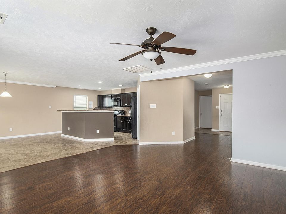 Laminate wood flooringCover patioGame roomKitchen with breakfast barCrown moldingSpacious primary bedroom