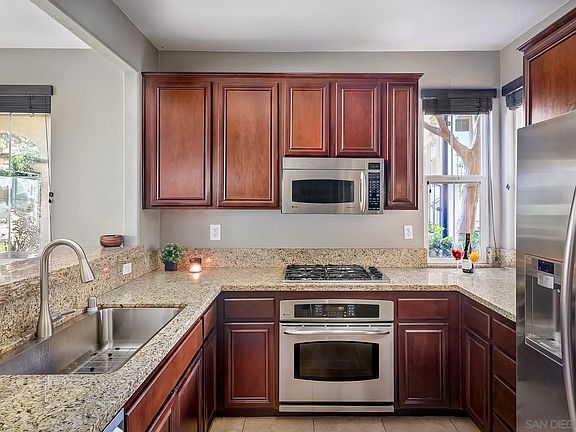 Welcome to this beautifully maintained 3-bedroom plus loft, 2.5-bath townhome located in the highly desirable 4S Ranch community. This bright and open home features a spacious living area with a cozy fireplace and large windows that fill the space with natural light. The upgraded kitchen boasts granite countertops, stainless steel appliances, rich wood cabinetry, and a gas cooktop, perfect for everyday living or entertaining. Upstairs, you’ll find three generous bedrooms including a serene primary suite with dual sinks and a granite vanity, plus a versatile loft ideal for an office, playroom, or media space. Additional highlights include an indoor laundry room with LG washer and dryer, a two-car garage, and central air conditioning. Located within the award-winning Poway Unified School District, this home is just a short walk to top-rated schools, parks, shops, and restaurants, with several parks nearby for kids and teens to enjoy. The 4S Commons Town Center offers a wide variety of dining, grocery, and entertainment options, and the convenient access to the 15 freeway makes commuting a breeze. Stylish, functional, and ideally situated—this home captures the perfect blend of comfort and convenience in one of San Diego’s most popular neighborhoods.