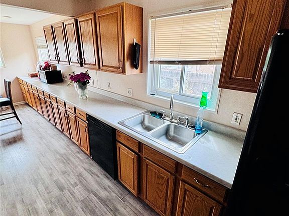 This brick ranch in the heart of Northglenn offers plenty of space, functionality, and potential. The oversized driveway and detached garage provide excellent parking and storage options. Inside, you’ll find a spacious living room and a fully enclosed, insulated sunroom with dual sliding glass doors that add extra versatility to the floor plan. The kitchen includes raised oak cabinetry and ample counter space, making it a practical hub for daily use.
