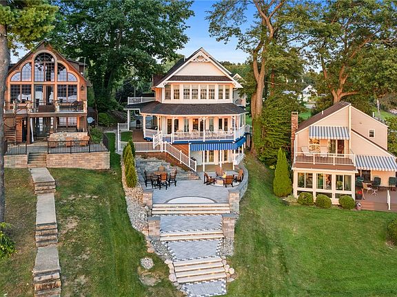 Indulge in luxurious lakeside living in this fully remodeled home, showcasing a harmonious blend of modern elegance & natural beauty. A chef's dream kitchen, complete with top-of-the-line appliances, quartz countertops & soft close cabinets, sets the stage for culinary creativity. A wall of windows & French doors leads to the deck overlooking Conneaut Lake. The lavish master suite, a true sanctuary, boasts breathtaking lake views, private deck, & spa-like bathroom. A versatile lower level w/2nd full kitchen & separate entrance offers endless possibilities for guests or multigenerational living. Further upgrades include a new roof & stunning, custom designed patio w/gas fire pit, enhancing the exterior allure of this exceptional property. Enjoy breathtaking sunsets over the water from your expansive deck, private lake access with your new dock, & modern amenities including whole-home security and new appliances.