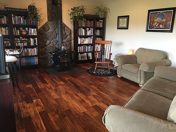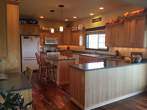 Just 5 miles from town, this beautiful custom 5 bed/4 bath home with wrap around porch rests on idyllic fenced 20 acres with pond, mountain views, outbuildings, vegetable garden and fruit trees. This main floor features an open concept large classic kitchen, family room, dining room, and bedroom/office, all with new (2017) wood & tile flooring, and a beautiful wood stove capable of heating the entire home. Upstairs are 4 carpeted bedrooms and 2 bathrooms. The 2 car garage includes shop space and a shed just off the side door with extra parking space. The exterior boasts a fresh coat of paint (2018) and refreshed decking. A partially finished 1,216 sq ft daylight basement with private entrance, additional 2 bedrooms, plumbed for a full kitchen, and a fully finished bathroom which can become a basement suite or extra living space - it's up to you! The land has been no spray/no till and naturally/holistically managed for decades with two organic dairies next door. There is a greenhouse at the large garden, a hen house with fenced yard, and a barn with hay storage close to the house. Bring your family and your animals - the place is ready.