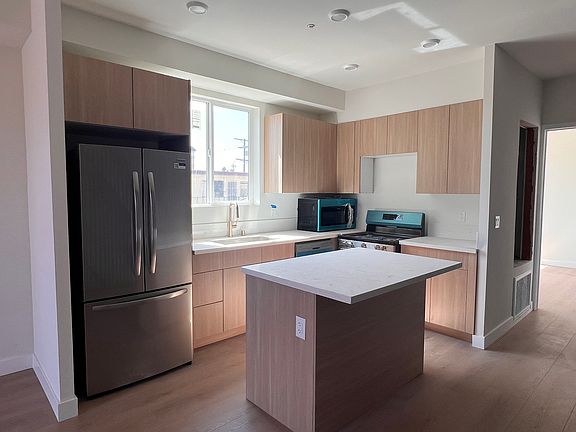 Be the first to live in this newly constructed, stylish 4 bed + 3 bath townhouse-style unit, centrally located in the vibrant Mid-Wilshire neighborhood. Two beautifully designed units are available! Step inside to find gorgeous hardwood floors throughout and a sun lit main level with a bright, open-concept layout. The modern kitchen comes fully equipped with stainless steel appliances, including a refrigerator, stove, and over-the-range microwave. Ample cabinetry and a sleek kitchen island offer plenty of prep and storage space perfect for entertaining or daily living. The kitchen seamlessly flows into the spacious dining and living area, which features a private balcony for relaxing or enjoying your morning coffee. A full bathroom and one bedroom are also conveniently located on the main floor. Upstairs, you'll find three additional bedrooms and two full bathrooms. Top it all off with a private rooftop deck, the perfect space for outdoor dining, relaxing, or taking in city views. The ground level features a private 2-car garage and a private fenced back yard. For added convenience, there are washer & dryer hookups and central AC & heating in each unit. Moments away are popular restaurants, trendy cafes, & markets. (More pictures will be uploaded soon.)