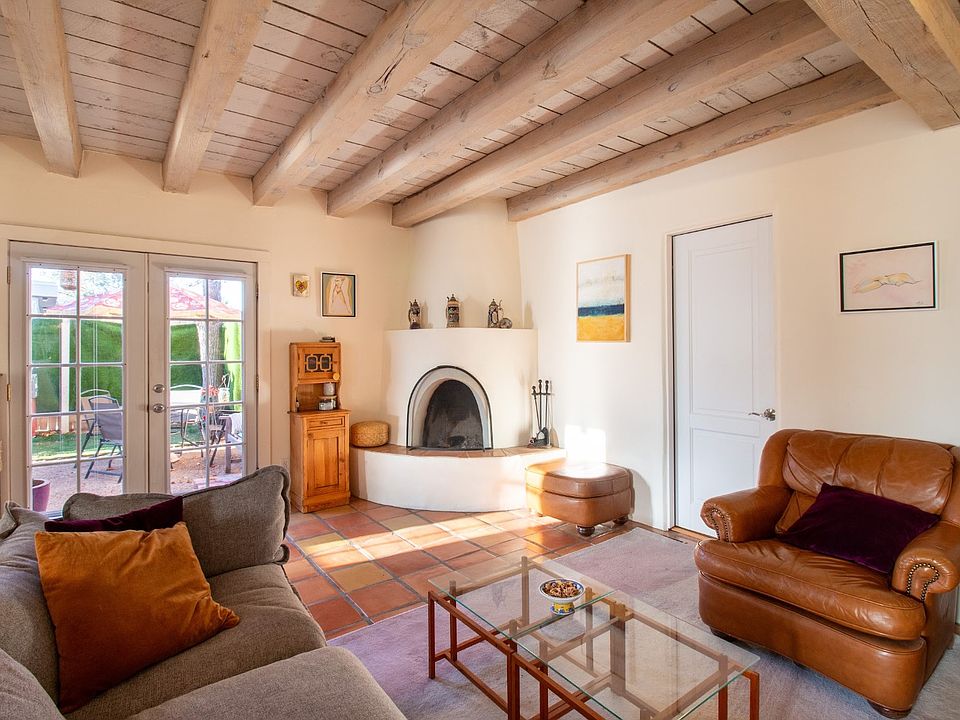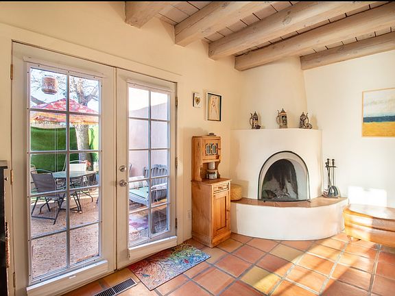 Kiva fireplaceSunny south-facing courtyardRemodeled kitchenBright bedroomsReclaimed oak wide-plank flooringSaltillo and talavera tileFrench doors