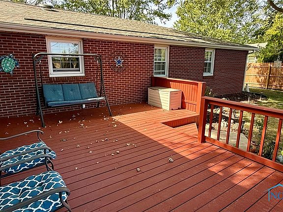 Adjoining half bathRed wood deckBonus roomLarge family roomCovered front porchCoffee coveLaminate flooring