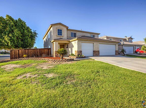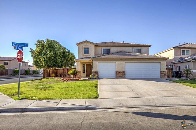 Looking for a spacious home in a well sought after neighborhood in Calexico? Look no more! This beautiful corner lot home features five bedrooms (1 bedroom downstairs) with private entrance. Three full baths, mud room and three car garage. Home also features a formal living and dinning room, family room, walk-in laundry room with cabinets and sink. The large loft upstairs can be enjoyed as is, or easily be converted into a 6th bedroom. The backyard has plenty of room to start your own dream patio project with a pool. Blinds, ceiling fans, chandeliers, and more!! Come see it for yourself, and fall n love.