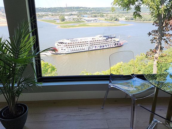 Double sided fireplacePanoramic viewsSpectacular mississippi river viewsFamily room areaReverse osmosis filterNewer custom amish cabinetsCustom bar area