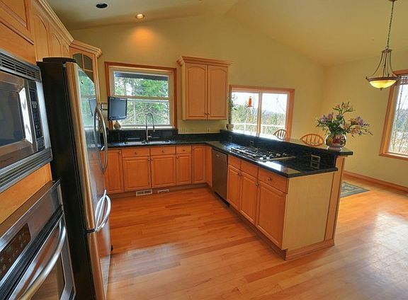 Builders own custom hm w/3400+sqft 3 bay shop on 5 private acres w/views! Features main floor master suite, granite counters, 9' ceilings, stainless appliances, Wolf cook top stove, custom crown moldings, utility room, central Vac, stamped concrete entry & lrg rear patio. Plumbed gas on deck for BBQ. Finished office w/bath, heat, large tool rm & huge basement. RV parking, hookups, & pump-n-dump. All located up on a hill w/great views! Close to Lake Padden trails, fishing & golf.