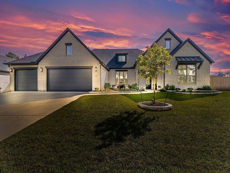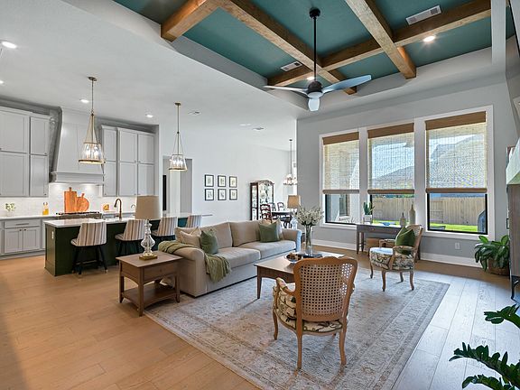 Fabulous Drees ONE STORY, lots of UPGRADES, situated on a LARGE LOT. Home features high ceilings, premium engineered wood flooring, the stained wood beams in entry and living area add architectural interest, upgraded tile selections, wine bar. Motorized woven wood shades in living and dining rooms. Enjoy cooking in a kitchen that boasts a large island with a farmhouse sink, lots of counter space, cabinets with sliding shelves, spice rack, utensil drawer, and kitchen dividers, plus a six burner cooktop, double ovens, coffee bar, and large walk-in pantry. Bedrooms are a generous size with private bathroom. Garage is equipped with an EV 50 amp charging outlet, doors were raised from standard 7' to 8', and the concrete has epoxy finish. Tankless water heater. Ultraviolet water filtration system with reverse osmosis. 14,000 SF lot with stained/treated fencing, upgraded front yard landscaping with water feature... Community pool, walking trail just outside the front door. Must see.