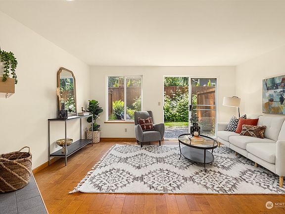 Spacious, bright and quiet condo close to schools and shops, only a half-mile from downtown Bainbridge! Spread over two floors, this condo lives like a house. On the main floor, the great room connects the kitchen, dining, and living areas for easy entertaining. Relax by the wood-burning fireplace or enjoy the sound of the birds on your private patio. The common gardens are maintained by a professional team, included in your dues. For the ultimate in privacy, two generous bedrooms upstairs each have a large closet and dedicated bathroom. The primary bathroom is en suite with a shower and the second bathroom has a tub/shower combo. The secondary bedroom has a perfect desk nook. New carpet and paint throughout and freshly remodeled bathrooms!