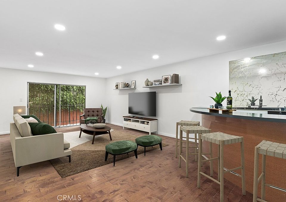 REFRESHED & RENOVATED UNIT! Introducing this perfect blend of comfort and convenience in this spacious 2-bedroom, 2-bathroom condo boasting 1,312 sq. ft. of thoughtfully designed living space. Located in the heart of West Hollywood, this condo is a true gem. The galley style kitchen has been renovated that features a newer stove and dishwasher, new tile flooring, new quartz countertops and sink. An inviting open-concept dining and living area details newer wood flooring, new recessed lights, fresh painted walls, an attached wet bar for entertaining and a balcony/patio area for outdoor allure. A stylishly designed full bathroom with eye-catching wallpaper is near the entry. The secondary bedroom has ample space with large windows for natural light. The primary suite is designed perfectly featuring wide windows, a spacious walk-in closet and a 3/4 bathroom with dual sinks. Another tremendous feature is a newer HVAC system with central heating and air for year-round comfort. Enjoy the perks of an HOA that offers a pool, jacuzzi, community laundry room, bike rack area and two dedicated side by side parking spots for added convenience. You are just moments from Santa Monica Blvd, Sunset Blvd, Gelson’s Market, Melrose Ave, and an endless array of shopping, dining, and entertainment options!