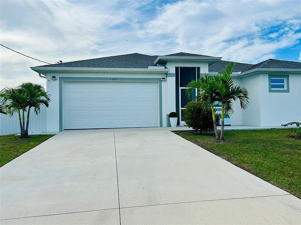 This stunning modern home features three spacious bedrooms and two beautifully designed bathrooms, perfect for a family or those who love to entertain. With vaulted volume ceilings throughout, the open layout creates a light and airy atmosphere that instantly feels welcoming. Impact doors and windows, ensuring safety and energy efficiency. The two-car garage, beautifully landscaped backyard, covered patio, driveway adds to the home’s curb appeal, lush fruit trees. Enjoy the serene entranceway covered by a screen, giving you a peaceful spot to unwind.