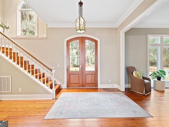 Nestled along the serene banks of the Julienton River, this stunning luxury estate offers an exceptional blend of Southern charm, modern comfort, and waterfront living at its finest. Set on 2.57 acres in a prestigious gated community, this home is perfectly positioned for those who seek both privacy and convenience. With deep-water access leading directly to the Atlantic Ocean, breathtaking river views, and proximity to the clubhouse and neighborhood dock, this property is a rare gem for boating enthusiasts and nature lovers alike. The main house is a masterpiece of craftsmanship, featuring three spacious bedrooms and three and a half bathrooms. The primary suite, located on the main level, serves as a private retreat with a lavish en-suite bathroom designed for ultimate relaxation. Upstairs, two guest bedrooms each boast their own private baths, offering comfort and privacy for residents and visitors. A versatile bonus room provides additional space, perfect for a media room, playroom, or home gym. Designed with both functionality and elegance in mind, the chef's kitchen is a dream come true for culinary enthusiasts. A striking tongue-and-groove ceiling adds character to the space, while high-end appliances, gas cooktop, and a walk-in pantry ensure effortless meal preparation. The adjacent wet bar and butler's pantry enhance entertaining possibilities, making hosting seamless and sophisticated. A formal dining room sets the stage for memorable gatherings, while the casual eat-in kitchen provides a cozy spot for everyday meals. The heart of the home is the inviting living area, where high ceilings and rich heart pine floors create a warm and welcoming ambiance. A grand fireplace serves as the focal point, perfect for cozy evenings. Step outside to experience true Southern living on the expansive screened-in back porch, complete with its own fireplace-an ideal setting for year-round enjoyment. An additional open porch allows you to take in the fresh coastal air and stunning river views. Adding to the home's thoughtful design is a dedicated dog-washing station, a unique feature that pet owners will appreciate. Beyond the main residence, a one-bedroom, one-bathroom guest apartment offers additional privacy for visitors or the perfect setup for a home office. With ample storage throughout the property, there is plenty of space to keep everything organized. The true highlight of this property is its unbeatable waterfront location. Whether you enjoy boating, fishing, or simply taking in the beauty of the river, this estate provides direct access to deep water, allowing you to embark on adventures to the Atlantic Ocean right from your backyard. The stunning views and tranquil setting make this home an unparalleled escape from the ordinary. With its blend of elegance, comfort, and prime waterfront positioning, this exceptional estate is more than just a home-it's a lifestyle. Experience the best of Lowcountry living in a private, gated community where every detail has been carefully curated for luxury and relaxation.