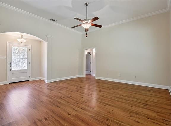 100% Financing Available This precious home whispers welcome home the moment you walk in. Modern arched entry flows into large open den with lovely laminate wood floors. Kitchen has smooth top stove & sunny breakfast area. Primary bedroom has step ceiling; bath has separate shower, garden style jet tub & 2 closets. Convenient location. Large fenced yard with plenty of room for backyard play. Hurry...this one won't last!!!