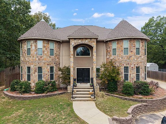 Welcome to your dream home in Bauxite—an extraordinary custom-built 5-bedroom, 7-bathroom home that truly feels like a modern-day castle on 2.20 acres! From the moment you enter, you're greeted by soaring ceilings, intricate coffered details, and an abundance of natural light streaming through oversized windows, creating a grand and inviting atmosphere. The open-concept kitchen features freshly painted cabinetry, elegant marble countertops, and effortless flow into expansive living and dining areas. Retreat to the primary suite, complete with a private sitting area, spa-inspired en-suite bath, and a walk-in closet. Each additional bedroom includes its own private en-suite, ensuring comfort and privacy for family and guests alike. Enjoy movie nights in the dedicated theater room or take advantage of the unfinished basement, offering limitless potential to create your ideal space. Step outside to a backyard oasis including a covered patio, an outdoor kitchen with built-in grill and Blackstone, and a sparkling in-ground pool. With fresh paint and new flooring throughout this one of a kind estate is move-in ready and waiting for its new owners! Schedule your showing today!
