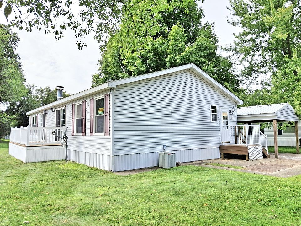 1990 Redman 28x48 approx.: 1,344 Sq. Ft. 3 Bedrooms - 2 Full Bathrooms. Must See!!!! This beautiful home and site has great yard space. This home features all appliances included with washer/ dryer and central A/C, large flowy gourmet kitchen that offers a lot of cabinet and counter space, spacious formal dining area, natural lighting fills every room in the home, large living room with fireplace & side out doors that lead to a beautiful deck, 3 large bedrooms all with walk in closet space, large master suite has its own private bathroom with walk in shower, 2nd bathroom very spacious with tub / shower combo, 3 seasons room, carport, private driveway, shed and much more!
