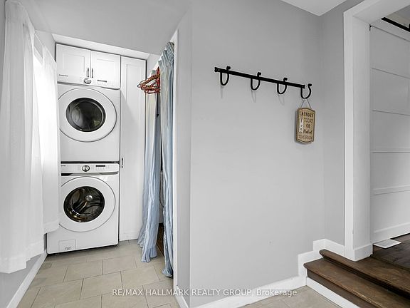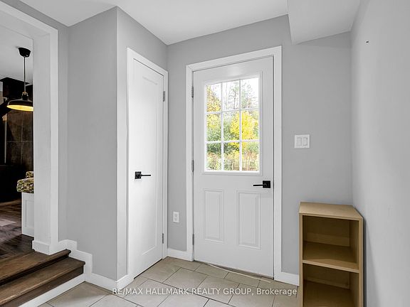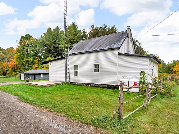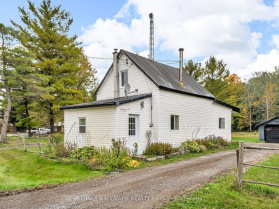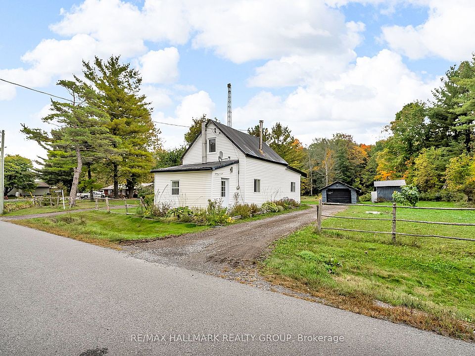 Charming farm style residence boasting a crisp white exterior with contrasting black roof in the quiet village of Mountain, North Dundas. Set on a sprawling 0.98-acre south-facing lot surrounded by nature, the grounds offer plenty of cleared space for gardening or recreation and the soaring trees provide a picturesque backdrop. Bonus detached garage is perfect for the hobbyist! Step inside and be greeted by your foyer and main floor laundry, followed by the dining area with wide plank laminate floors! The L- shaped kitchen features granite counters, ceramic backsplash, and plenty of cabinetry for storage. At the back of the home a spacious family room is a great space for entertainment and leads directly to your wood patio overlooking the backyard. Modern 4pc main bathroom with decorative panelled wall, tile floor, vanity with matte black hardware, and tub/shower with white tile surround. Upstairs is the primary bedroom and 2nd bedroom. More than a home, a quiet lifestyle - book your viewing today! 24 hours irrevocable.