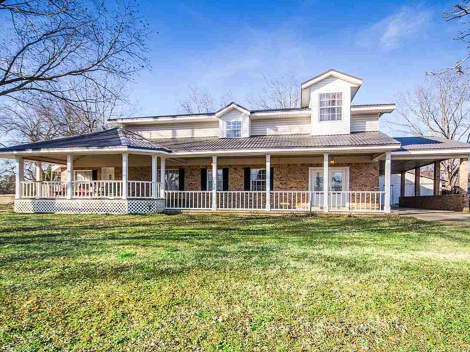 Large, country farmhouse on over 13 acres with 2 ponds, outbuildings, RV parking, guest cottage and totally fenced. Ready for livestock. Metal roof installed in 2006. 3 water wells - never pay water bills again. Fabulous front porch is big enough for a crowd! Formal living OR dining room, craft room OR office, breakfast room, massive family room w/ fireplace - great for holidays! Country kitchen has granite countertops, huge pantry, 2 ovens. Storage galore with 7 giant walk-in closets! 2 HVAC systems.