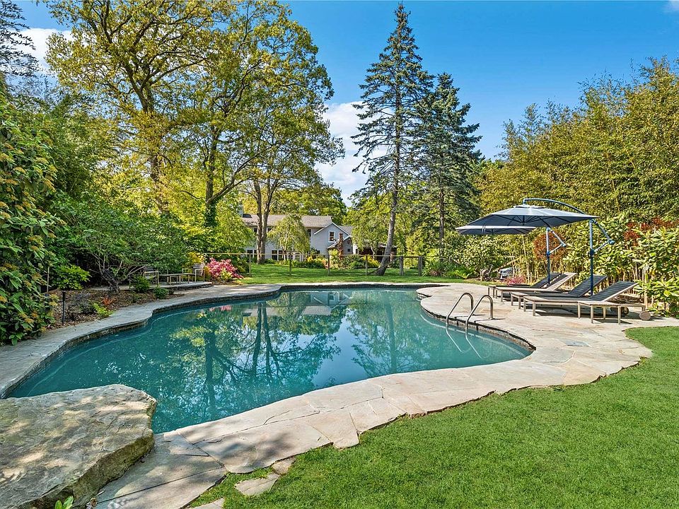 Escape to your own private oasis in the heart of Mattituck, NY, minutes away from shops, restaurants, the Hampton Jitney and the LIRR. This 3 bed, 2.5 bath home offers hardwood floors throughout, a large living/dining room with a raised fireplace, a separate TV/den room, a sun room, walk-in pantry and sun filled kitchen. The second floor offers a primary bedroom with its own fireplace, walk in closet and ensuite bath; convenient second floor laundry; two additional bedrooms with a shared bathroom. Venture outside to experience the epitome of relaxation. The meticulously maintained backyard is a true paradise, featuring a covered porch, large dining area patio, and a spectacular inground gunite pool, with a wraparound bluestone patio, surrounded by lush gardens. With its resort-like ambiance, you'll feel transported to a vacation destination right in your own backyard. To top it off the property features a large 28'x52' 2-story barn that has endless potential.
