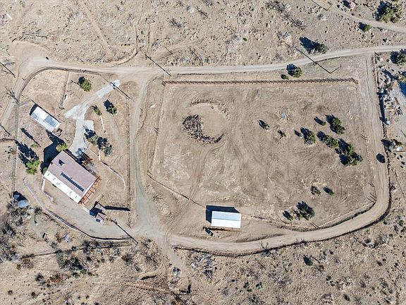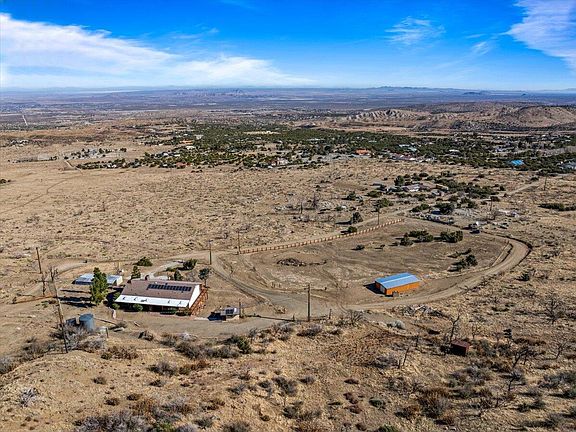 Desirable Juniper Hills five acre HORSE PROPERTY (includes APN #3059-021-036 & 037) with custom multi-level home and panoramic views of the Southeast Antelope Valley and the San Gabriel Mountain range. Two barns with tack/feed rooms (newer barn has electricity and automatic water), two wells, fully fenced and cross fenced and riding trails right out the gate, Many amenities including wood burning fireplace in living room and free standing wood burning stove in master bedroom; concrete counter tops in kitchen and matching concrete topped dining table in eating area off kitchen; attached spacious two car garage/workshop and half bathroom; soft water system, tankless hot water heater and paid solar. MUST SEE TO FULLY APPRECIATE!