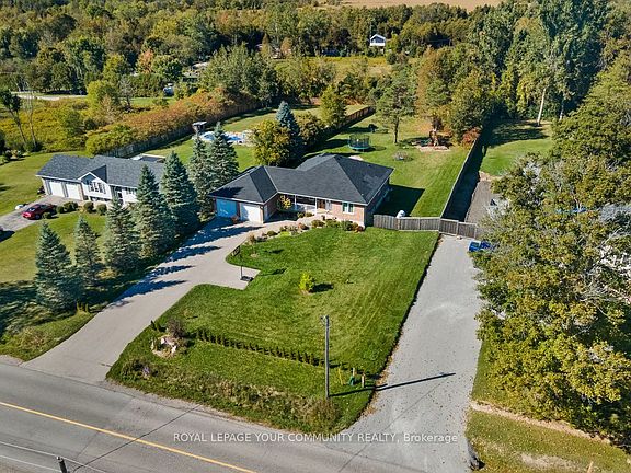Welcome to 10450 Ravenshoe Road in the charming community of Udora! This custom-built all-brick ranch bungalow sits on approximately 1 acre of private land with no rear neighbours and has been extensively updated throughout. The home features a newer custom-designed kitchen, a stunning floor-to-ceiling gas fireplace, walk out kitchen to deck, all newer windows and doors, updated light fixtures and fans, fresh paint, and a paved driveway with professional landscaping. Additional parking added for up to 12 cars. Recently converted to propane heating for improved function, this home also boasts nearly 1000 sq ft of open-concept unfinished basement with bathroom rough-in, ready for your personal design. The 2.5-car garage with inside entry provides ample space for vehicles, tools, and outdoor toys. This home offers the perfect balance of privacy and community, this move-in ready bungalow allows you to enjoy peaceful country living while still being connected to the welcoming charm of Udora. Walking distance to the Community Center and only a 15 minute commute to the 404. Truly a property that checks all the boxes!