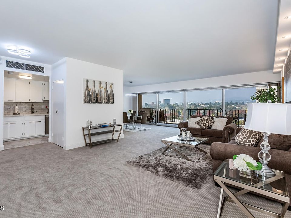 Amazing renovation just completed in late November 2021. Expansive 10th floor one-bedroom residence located in The Churchill, a full-service, classic Mid-Century high rise on the Wilshire Corridor. This front facing condo offers some of the Best Views at the Churchill with fantastic northerly views of the Getty, Westwood and UCLA. Featuring an open concept floorplan with a Huge Balcony, Newly Renovated Kitchen with new stainless-steel appliances, counter tops, backsplash, and flooring and extra storage which open's to dining area and formal living room. The oversized bedroom offers abundant closet space and room for desk and sitting area and City views. The amazing top to bottom decorator remodeled bathroom has just been completed which includes a large double sink vanity, oversized shower, lighted and de-fogging mirrors and much more. In addition, the entire unit has been completely re-painted and luxurious and beautiful carpet installed. The living room offers beautiful back drop lighting. The seller will consider offering the amazing furnishings in the Living Room Dining Room, and Balcony. The Churchill is a full-service building offering 24-hour front desk/security, valet parking, gym, sauna, extra storage, recreation room and one of the best outdoor pools and decks on the Corridor. HOA dues include utilities, basic cable, and building amenities. Excellent location, close to UCLA and Westwood Village. This showcase Unit includes 2-Parking Spaces.