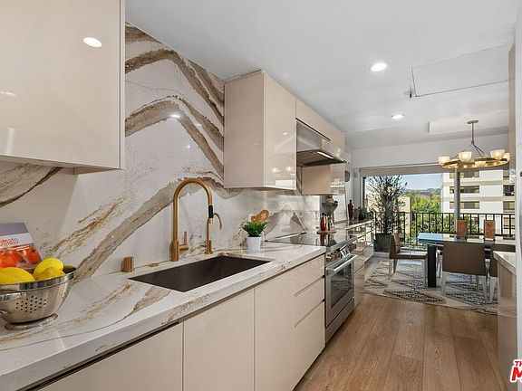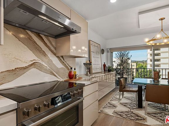 Welcome to this stunning 1 bedroom, 1 bath condo, located on the 5th floor of The Churchill, a full-service building on the prestigious Wilshire Corridor. This front-facing unit boasts an open floor plan, perfect for entertaining guests. The newly remodeled, state-of-the-art kitchen is a chef's dream, equipped with elegant quartz countertops and backsplash, a Bosch induction range, a Bosch built-in microwave, a Miele dishwasher, a spacious pantry, and an LG refrigerator and washer/dryer. A matching built-in buffet with lots of storage extends into the dining room. The living room is equipped with Shade Store roller blackouts, providing style, privacy and comfort. The bedroom offers Hunter Douglas Pirouettes partial blackout shades and a walk-in closet, a unique and rare feature at The Churchill. The remodeled bathroom includes a large soaking tub and a high-end Toto wash-let toilet. Relax on the large balcony and enjoy the convenience of 2 large storage units in the garage. Residents of this full service building enjoy fabulous amenities, including 24/7 valet and concierge services, a pool, a card/rec room, and a gym. HOA dues conveniently cover all utilities and basic cable. Perfectly situated near Westwood, Beverly Hills, and Century City, this condo offers convenience and luxury in one of LA's most desirable areas. Don't miss the opportunity to make this exquisite condo your home!