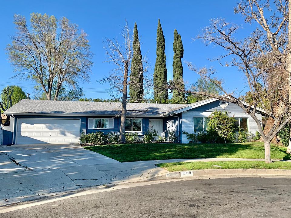 Modern ranch style home in this amazing neighborhood of Granada Hills at the end of a quiet cul-de-sac. Located within the highly sought after Granada Hills Charter High School boundaries! New oversized pergola over the back patio plus two grassy areas, perfect for entertaining. Double-paned windows, HVAC, roof, and insulation all updated within the last 9 years. Beautiful bamboo engineered wood floors throughout, newly painted, central air & heat, and a two car garage. Bright kitchen has white wood 'shaker' style cabinetry, stainless steel appliances, and quartz counter tops. Primary bedroom features his-and-hers closets and en-suite bath, with marble hexagon flooring in both bathrooms. Convenient location near shopping, dining, and public transportation. Walkable to Granada Hills Charter K-8. This one will go fast, call or text to schedule a showing today! INCLUSIONS: Dishwasher included. However, refrigerator, washer, and dryer are being left as a courtesy by owners, but are not warranted in any way nor will they be maintained or replaced by property owner. EXCLUSIONS: Playhouse/swing set is being removed. Utilities are not included, but rent does include the gardener. Pets are allowed, however there are breed, size, and quantity limitations. An additional $500 pet deposit will be due, plus $30 pet rent per pet each month.
