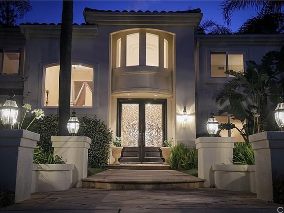RE-BUILT 1996-CORNER LOT---4180 sq ft---11,865 lot---5 Br 4 Ba + FAMILY ROOM + POOL & SPA--- BEVELED GLASS, BLACK DOUBLE FRONT DOORS, Light-filled entry, boasts amazing 30' ceilings with marble flooring with a view of the vast Living Room, Baby Grand-Piano room & former Dining Room/build in china cabinets. Rooms with gleaming hardwood floors. Downstairs, 1 Br 1 Ba suite/office w/ build in library shelves. OPEN FLOOR PLAN--HALL WAY VIEW, leading to an inviting BREATH TAKING BACK YARD, POOL & SPA with Cascading Water. RESORT LIVING AT IT'S BEST. KITCHEN Granite counter tops, high-end Appliances, built in cabinetries, Butler's pantry, Laundry Room FAMILY ROOM W/ BUILD IN BAR & TV ENTERTAIMENT CENTER & FIREPLACE. Room is bathed in lovely natural light/which has French Doors that open to a lush backyard that features a built in barbecue, multiple seating areas, and fruits trees and flowers. UPSTAIRS, Sunny bedrooms w/ spacious master suite with dream walk-in closet, elegant Marble en suite, double vanity, tub. BALCONY with a view of the plush back yard THEATER ROOM upstairs with 8 recliner chairs and projector 2nd Bedroom/Suite & 1BR 1 BA. Both get bathed in lovely natural light High Ceilings with recessed lighting thru out /Coffered ceilings HOME IS Meticulously Maintained & Impeccably Updated IN & OUT. A HOME DESIGNED WITH SOPHISTICATION FOR ENTERTAINER'S OASIS & PURE ENJ0YMENT!! Enjoy life in one of the area's most sought after.