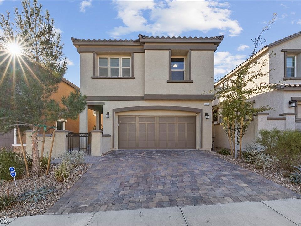 STUNNING Two-story home located in SKYE CANYON! This Outstanding Community offers: Pool, Fitness Center, Tennis Courts and More! PLUS LOW monthly HOA! Home is BEAUTIFULLY updated with Black Cabinetry, Gold accents, Black Stainless Appliances, Gorgeous Countertops, and a Feature Wall for a Wall Mounted Tv! Upstairs offers 3 bedrooms with a cozy Loft and Laundry area. Primary Bedroom offers spacious en-suite Bathroom with Dual Vanities and LARGE WALK-in CLOSET! Clean and MOVE-IN READY! Come see today!
