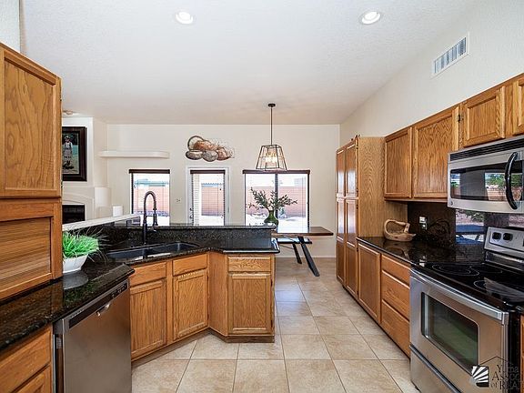 Step into this Southwest-style 4-bedroom, 2-bath home where natural light fills every room and thoughtful details set it apart. The spacious living room welcomes you with a cozy fireplace and open sight lines that make the home feel bright and airy. In the kitchen, granite counters, plentiful cabinetry, and updated appliances create a functional space that still feels warm and inviting. The oversized primary suite is a true highlight—large enough for a sitting area or reading nook, with a spa-inspired bathroom featuring a soaking tub and generous vanity space. Secondary bedrooms offer flexibility for family, guests, an office, or hobbies, while updated lighting and ceiling fans add comfort throughout. Outdoors, low-maintenance desert landscaping frames both the front and back yards, offering a practical yet charming setting that complements the home’s style. Whether you’re relaxing inside or entertaining outside, this property combines space, light, and Southwest character in a way that’s hard to find.