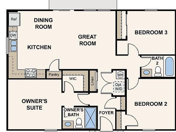Step into your new life at this beautifully crafted home in the heart of the Arizona City Community! The Sabrosa Floor Plan offers a well-organized single-level layout with three bedrooms and two full baths. At the heart of the home, the great room flows into the dining area and kitchen, creating a connected space ideal for daily living. The kitchen features granite countertops, stainless steel appliances, and a walk-in pantry, combining modern finishes with practical design. The primary suite is positioned for privacy and includes a walk-in closet and a double vanity bath. Two additional bedrooms are located near a second full bath, offering flexible options for work or guest use. A covered patio extends the living space outdoors, while the foyer and porch provide a welcoming entry.
